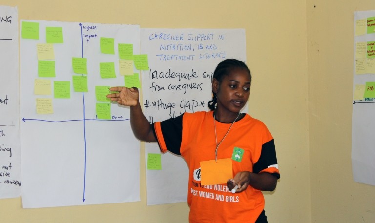 In addition to mental health, other emerging topics included HIV status disclosure, peer support, treatment adherence, stigma and shortfalls in HIV treatment literacy. The ideation process generated 113 unique ideas in areas of impact including mental health, physical health, adherence, disclosure, peer support and economic and livelihood issues. The design team developed a database of all ideas, grouped by impact area and listed with a “youth priority score” and location.