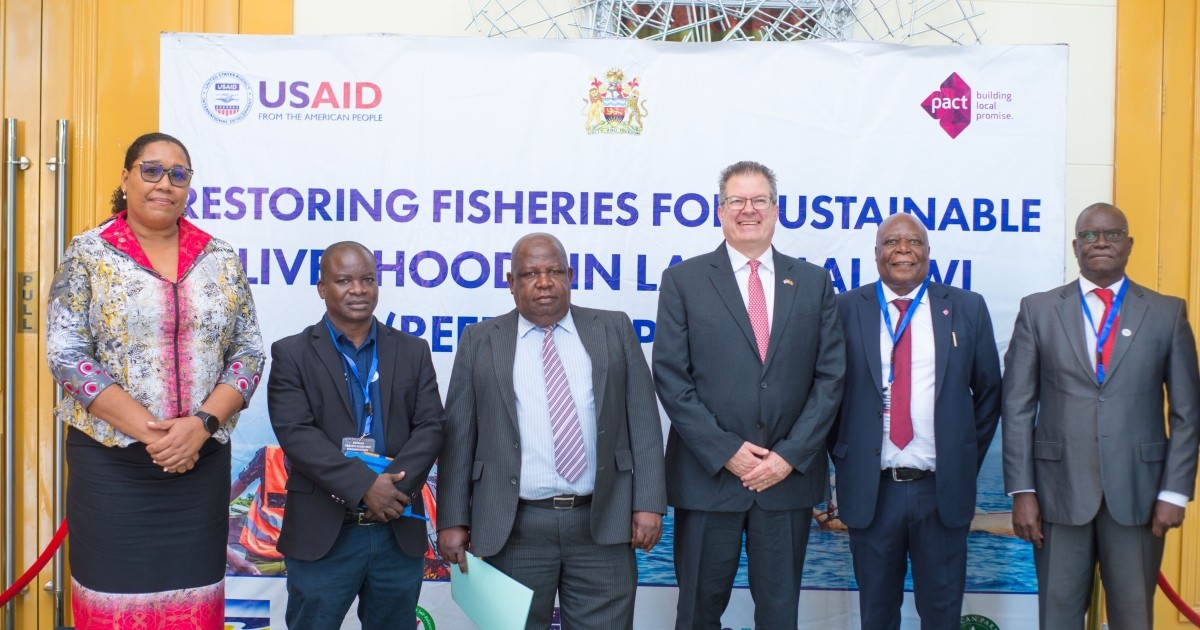 Joseph Magwira, Principal Secretary for Administration in the Ministry of Natural Resources and Climate Change, was the event guest of honor. Other notable attendees included USAID Deputy Mission Director Michael Rossman, Dr. Hastings Zidana, Director of Fisheries, and key representatives from Pact, Deputy Regional Director Marianna Balampama and REFRESH Chief of Party Dr. Daniel Jamu.