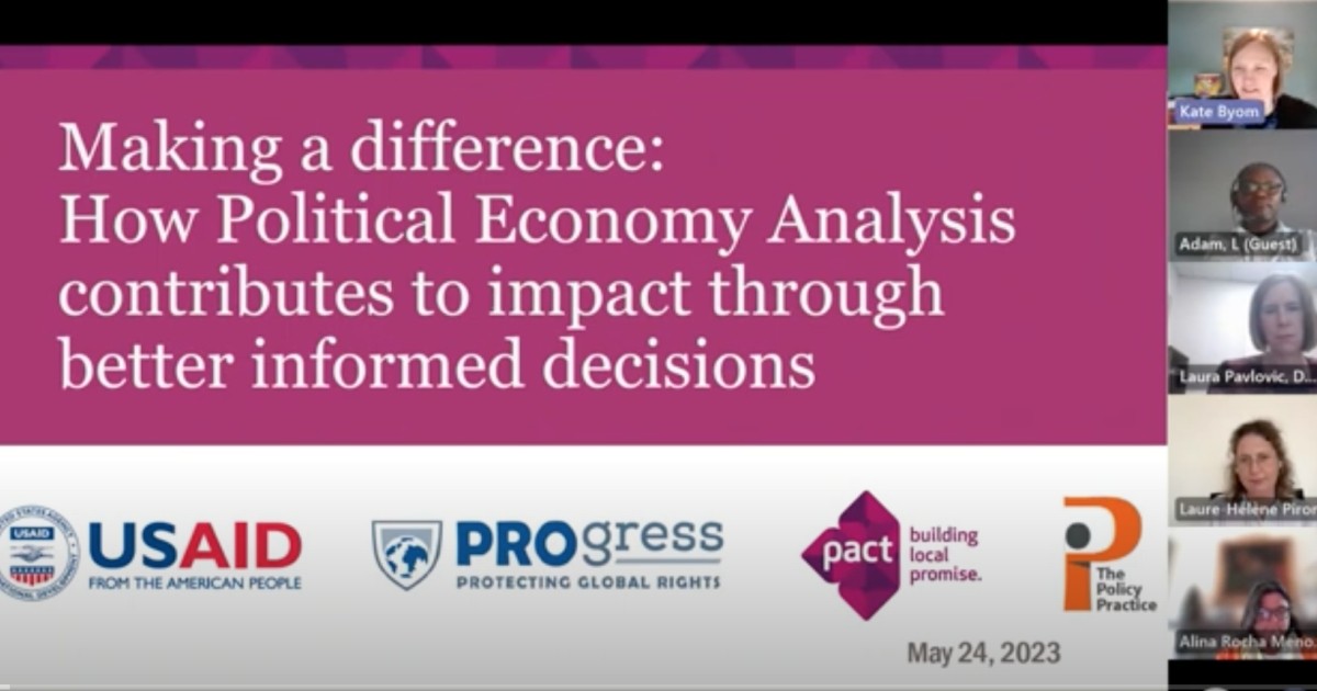 How does Applied Political Economy Analysis (APEA) help us to inform choices about our programs, and what difference does that make to the kind of impact we hope to achieve? Through the Human Rights Support Mechanism (HRSM) Leader with Associates Award, Pact commissioned a Learning Review from The Policy Practice to explore these questions, looking at three different projects in Tanzania, Colombia and Somalia. In this roundtable discussion, panelists discussed key findings, lessons, implications and considerations for implementers and funders.