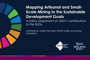 Pact and the University of Delaware’s Mapping Artisanal and Small-scale Mining to the Sustainable Development Goals (ASM-SDG Policy Assessment) is the first report assessing all positive and negative relationships between artisanal and small-scale mining (ASM) and the U.N. Sustainable Development Goals (SDGs). It analyzes the relationships between ASM and each of the 17 SDGs and their associated targets, and provides concrete guidance to policymakers, donors and private partners for harnessing ASM-SDG interlinkages and unlocking the sector’s full sustainable development potential.