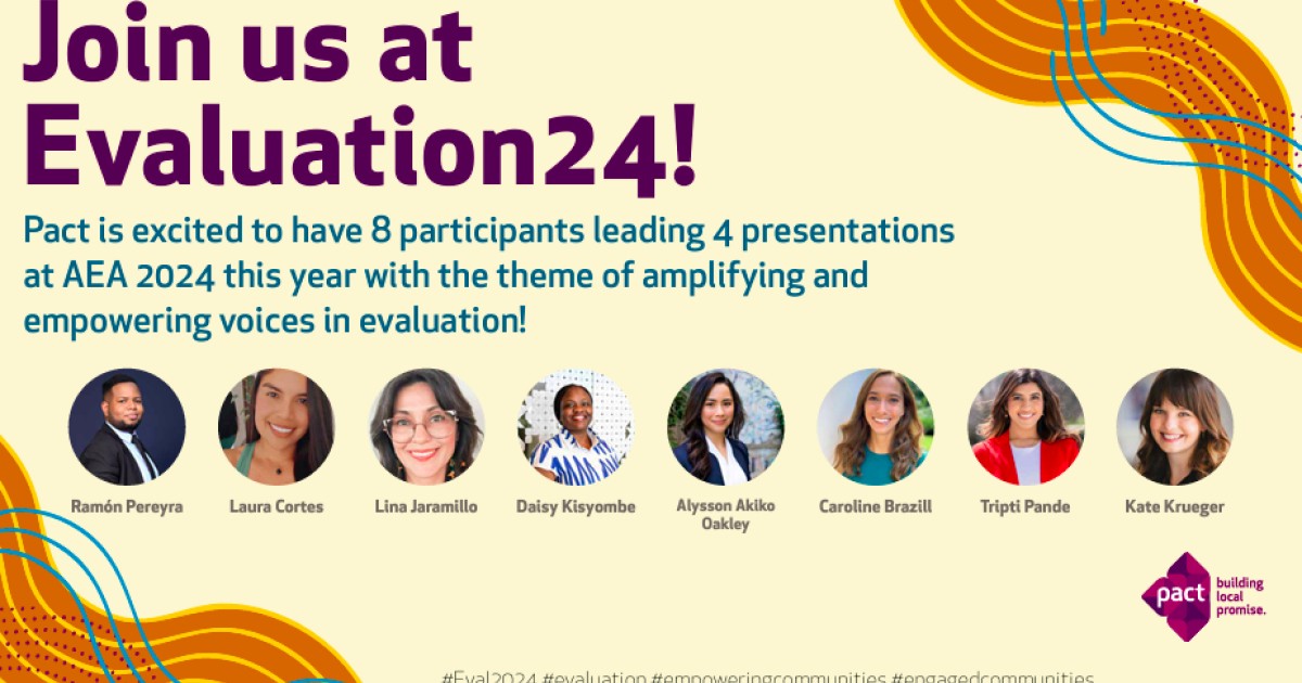 Pact will share its innovative evaluation approaches in 2 demonstration sessions, 1 panel and 1 presidential strand roundtable. Lessons will draw from evaluation in the Dominican Republic, Colombia, Ethiopia and Sudan on engaging and empowering communities to autonomously use monitoring, evaluation, research and learning (MERL) techniques for decision-making, rapidly adapting programming in war and conflict settings, co-developing an outcomes assessment tool for a migrant population and more.