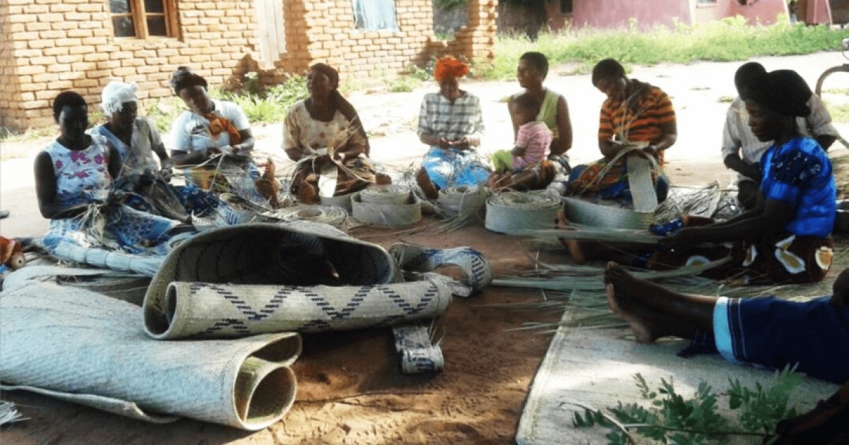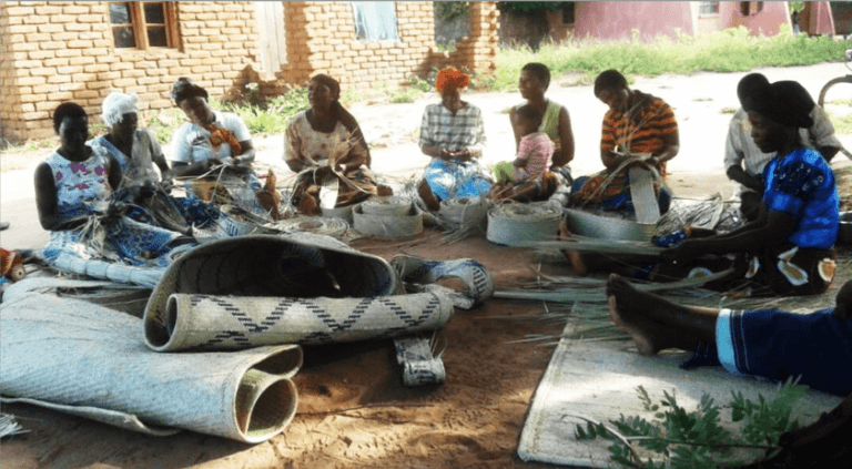 Lead photo: WORTH group members weaving grass mats for their new business.
